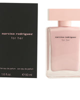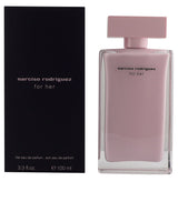 Dizajn za njenu bocu Eau de Parfum zadržava ikoničnu siluetu povezanu s kolekcijom. Njegov elegantan i geometrijski oblik odražava rafiniranu jednostavnost modernističkog dizajna. Umjesto klasične unutrašnjosti crnog laka koji se nalazi u toaleti za svoju eau de toaletnu, ova verzija ima meku goli ružičastu nijansu, značajku potpisa narciso rodriguez mirisa, koja prenosi duboku senzualnost svojstvenu ovoj intenzivnijoj iteraciji za nju.